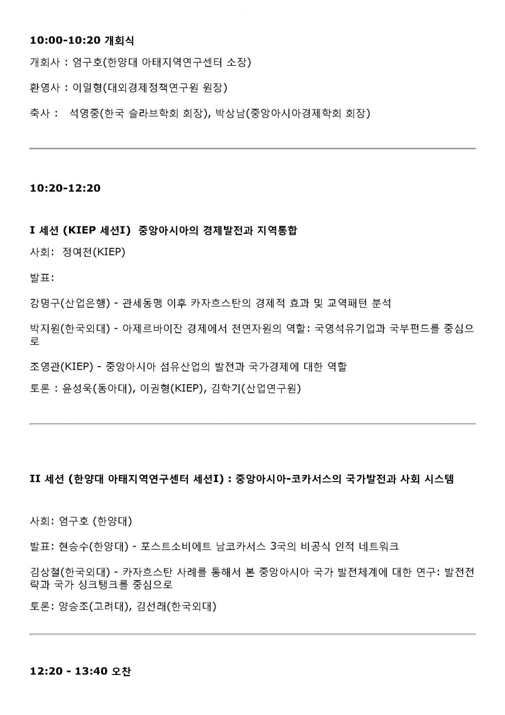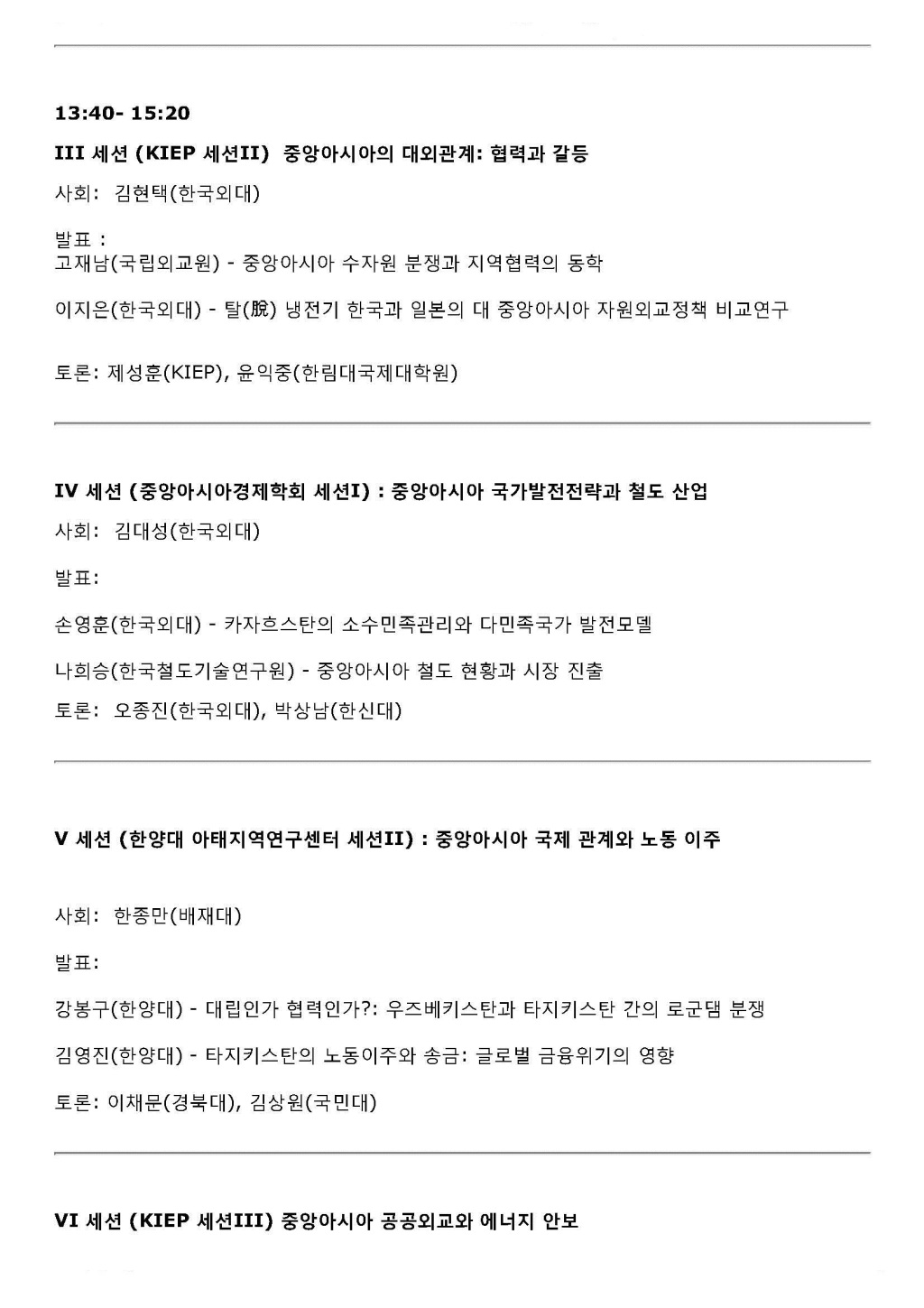 중앙아시아 제5차 연합학술대회: 중앙아시아 협력레짐과 정치 공간