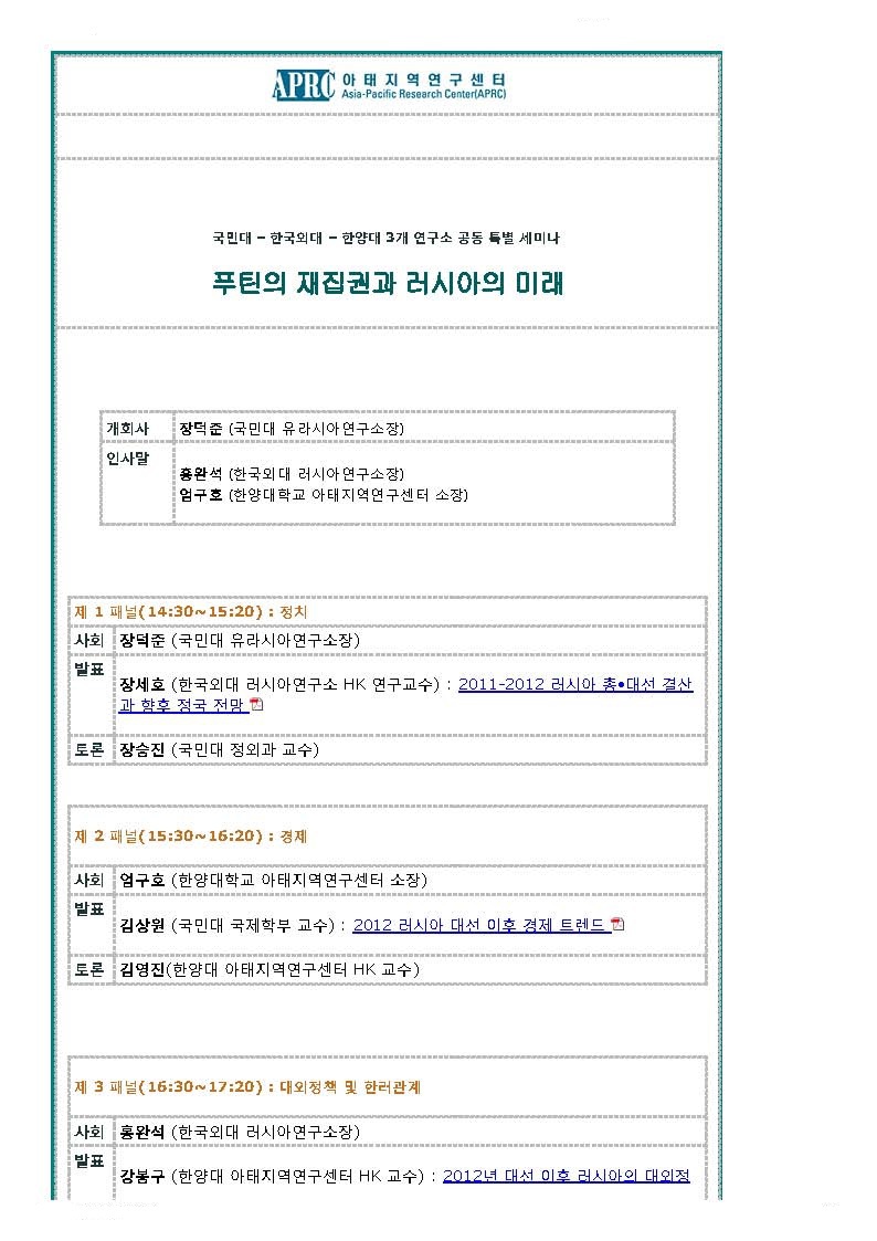 [국민대–한국외대–한양대 3개 연구소 공동 특별 세미나] 푸틴의 재집권과 러시아의 미래