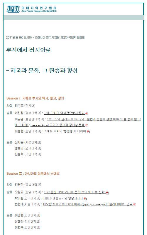 [2011년도 제2차 HK 국내학술회의] 루시에서 러시아로 - 제국과 문화, 그 탄생과 형성