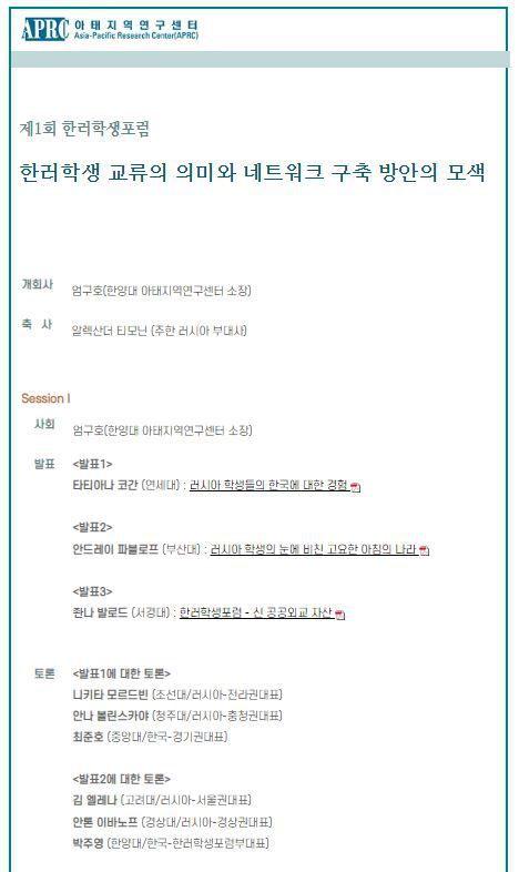 [1차 한러학생포럼] 한러학생 교류의 의미와 네트워크 구축 방안의 모색