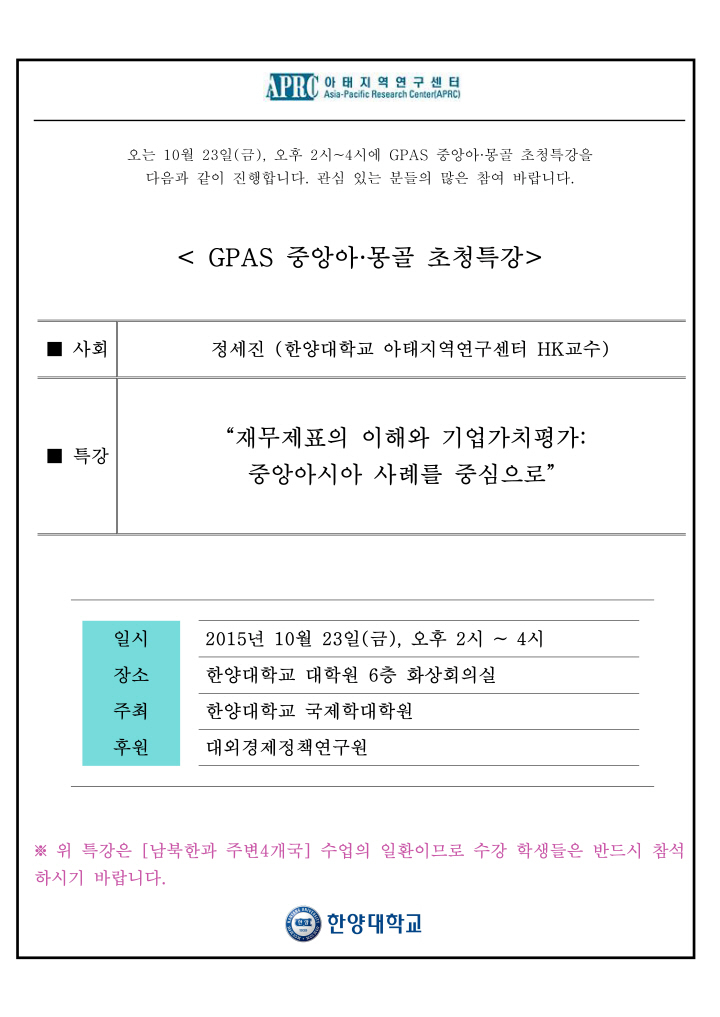 [공지] GPAS 중앙아·몽골 초청특강 (2015.10.21)