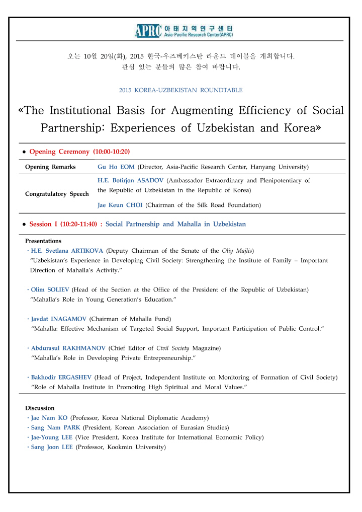 [공지] 2015 한국-우즈베키스탄 라운드테이블