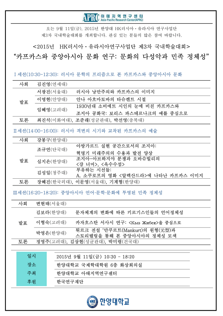 [공지] 2015년 HK러시아유라시아연구사업단 제3차 국내학술대회 (2015.09.11)