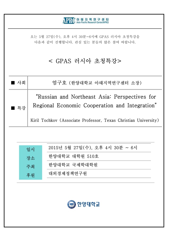 [공지] GPAS 러시아 초청특강 (2015.05.27)