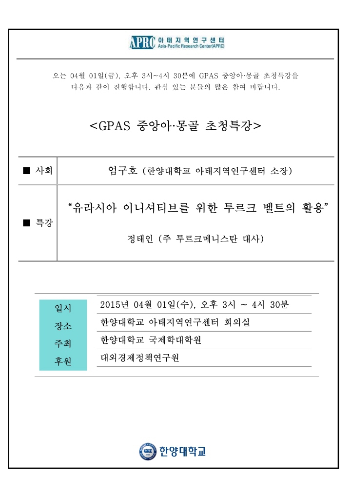 [공지] GPAS 중앙아·몽골 초청특강 (2015.04.01)