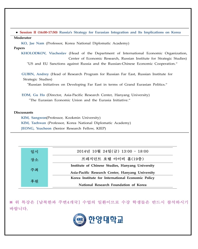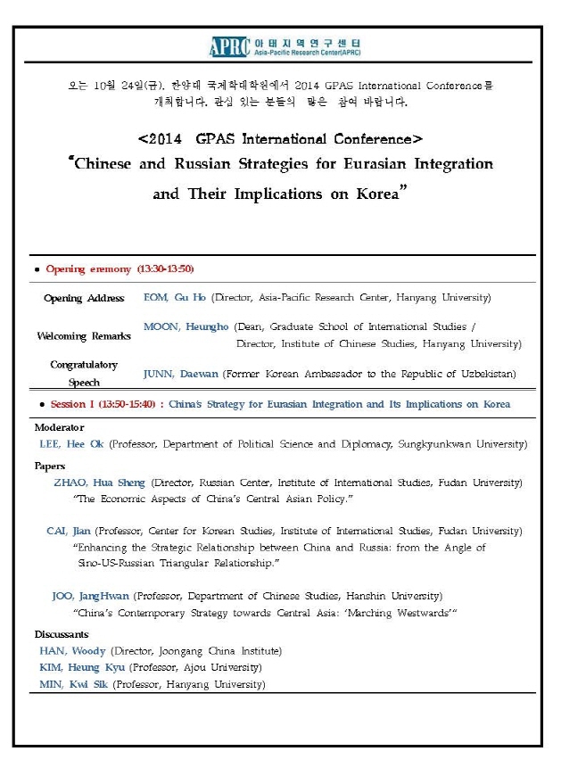 2014 GPAS International Conference“Chinese and Russian Strategies for Eurasian Integration and Their Implications on Korea