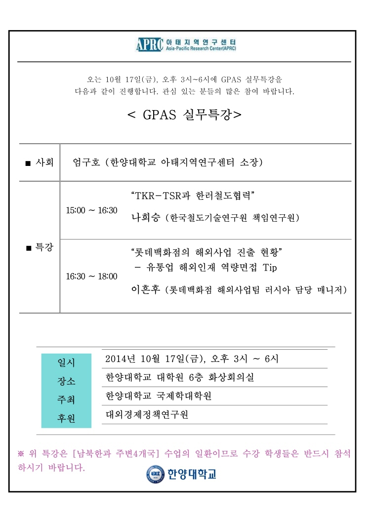 [공지]GPAS 러시아 해외학자 초청특강(2014.10.15)
