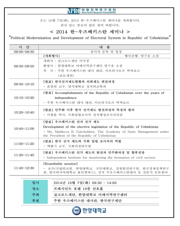 [공지] 2014 한-우즈베키스탄 세미나