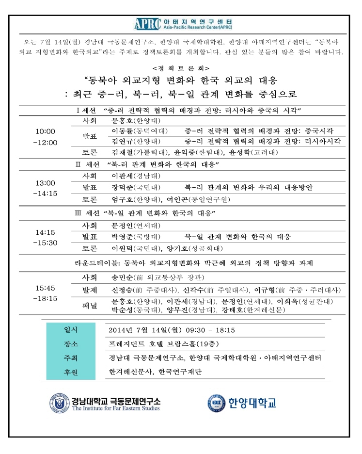 [공지]정책토론회"동북아 외교지형 변화와 한국외교"
