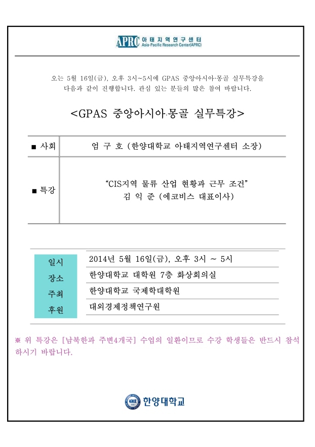 [공지]GPAS 중앙아시아 · 몽골 실무특강 (2014.05.16)