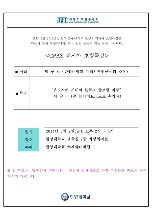 [공지]GPAS 러시아 초청특강 (2014.05.02)