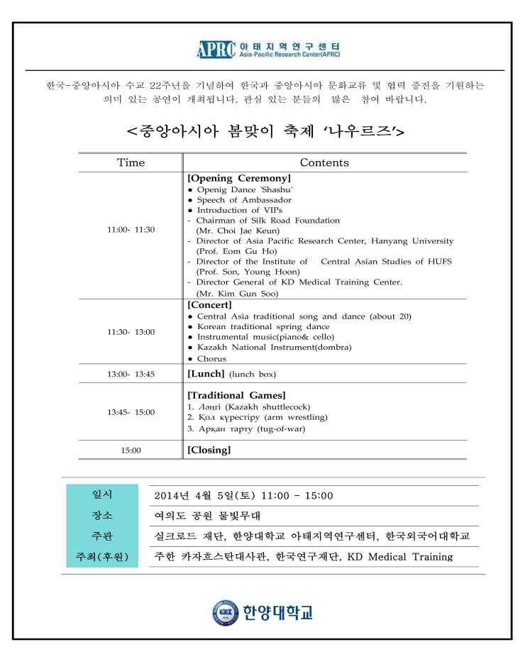 [공지]중앙아시아 봄맞이축제 "나우르즈"