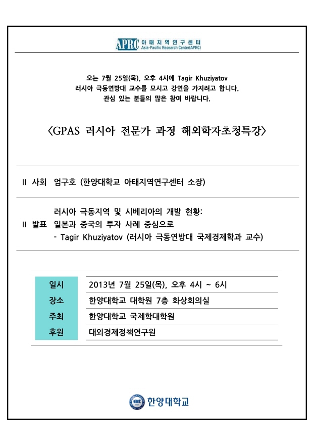 GPAS 러시아 전문가 과정 해외학자초청특강(2013년 7월 25일)