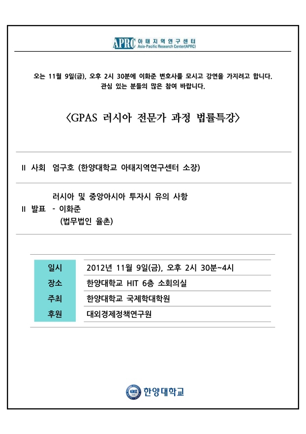 [공지] GPAS 러시아 전문가과정 법률특강