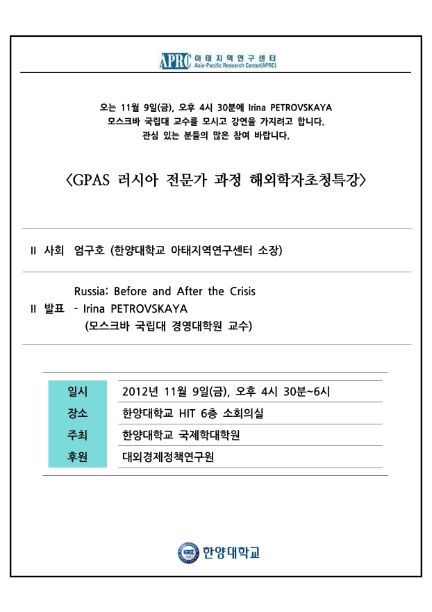 [공지] GPAS 러시아 전문가 과정 해외학자초청특강