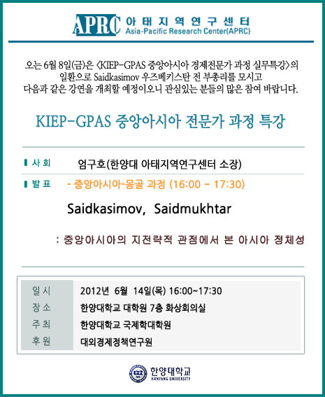 [공지] KIEP - GSIS 중앙아시아•몽골 전문가 과정 특강(2012년 6월 21일)