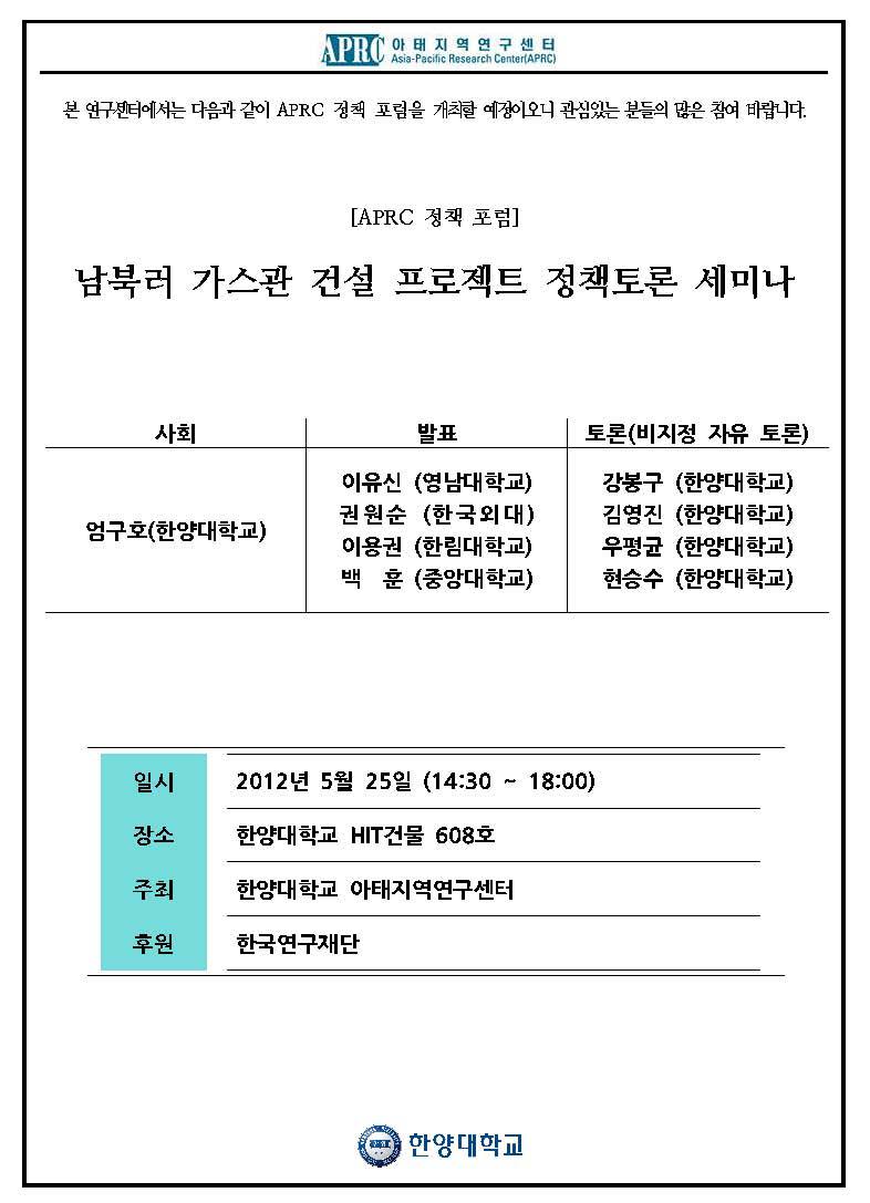 [APRC 정책포럼 공지] 남북러 가스관 건설 프로젝트 정책토론 세미나