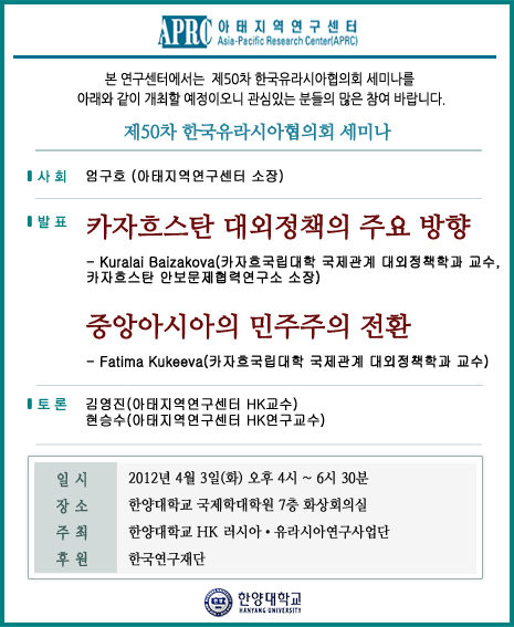 제50차 한국유라시아협의회 세미나 안내