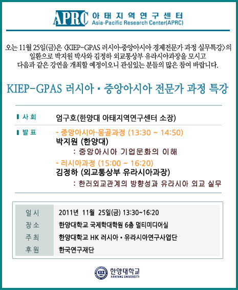 [KIEP-GPAS 러시아-중앙아시아 전문가 과정 실무특강] 안내
