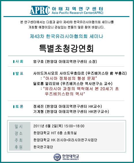 제43차 한국유라시아협의회 세미나 안내