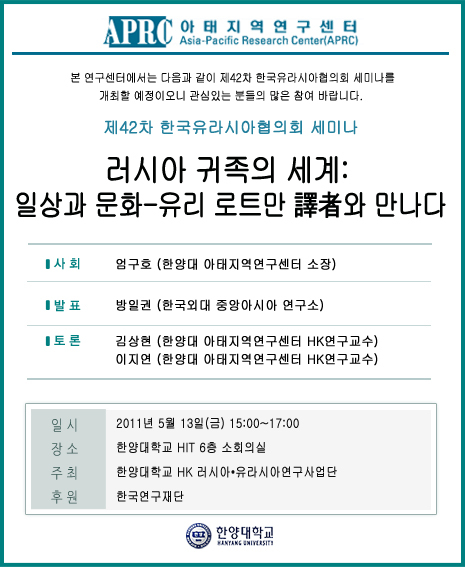 제42차 한국유라시아협의회 세미나 안내