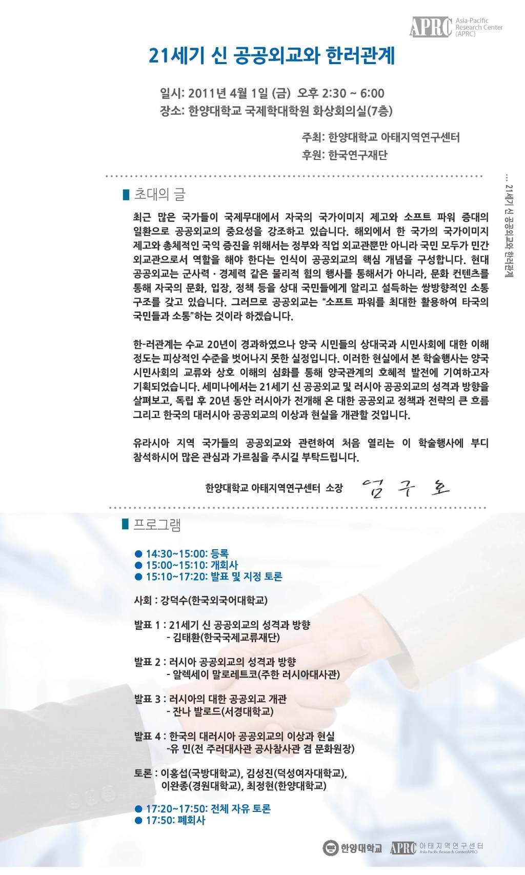 [세미나 안내] 21세기 신 공공외교와 한러관계