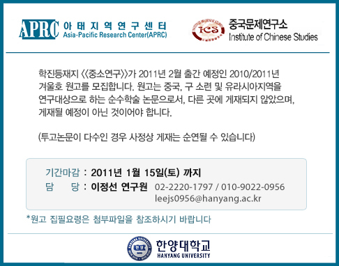 [중소연구] 2010년도 겨울호 원고모집