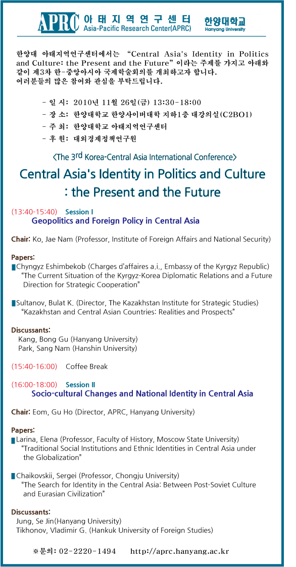 <제3차 한-중앙아시아 국제학술회의> 안내
