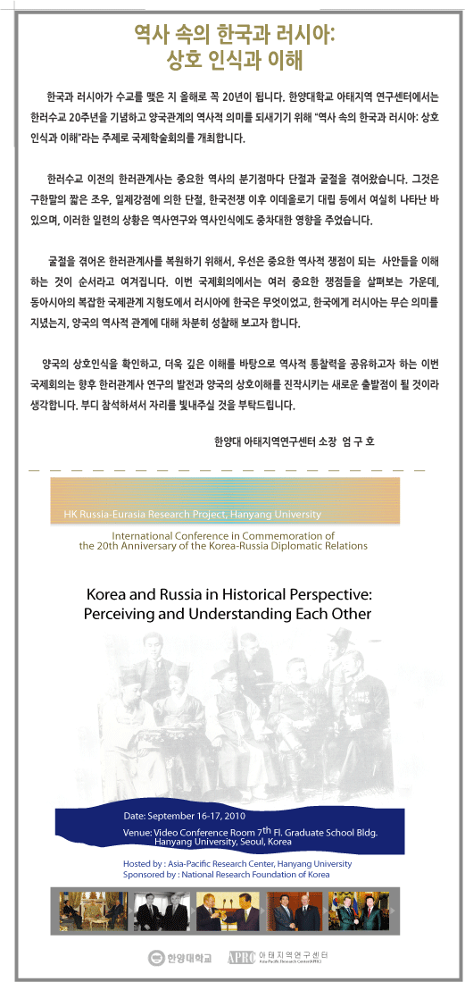 <한러수교 20주년 기념 국제학술회의> 역사 속의 한국과 러시아: 상호 인식과 이해
