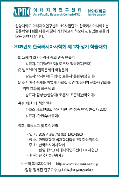 2009년 한국러시아사학회 제1차 정기 학술대회