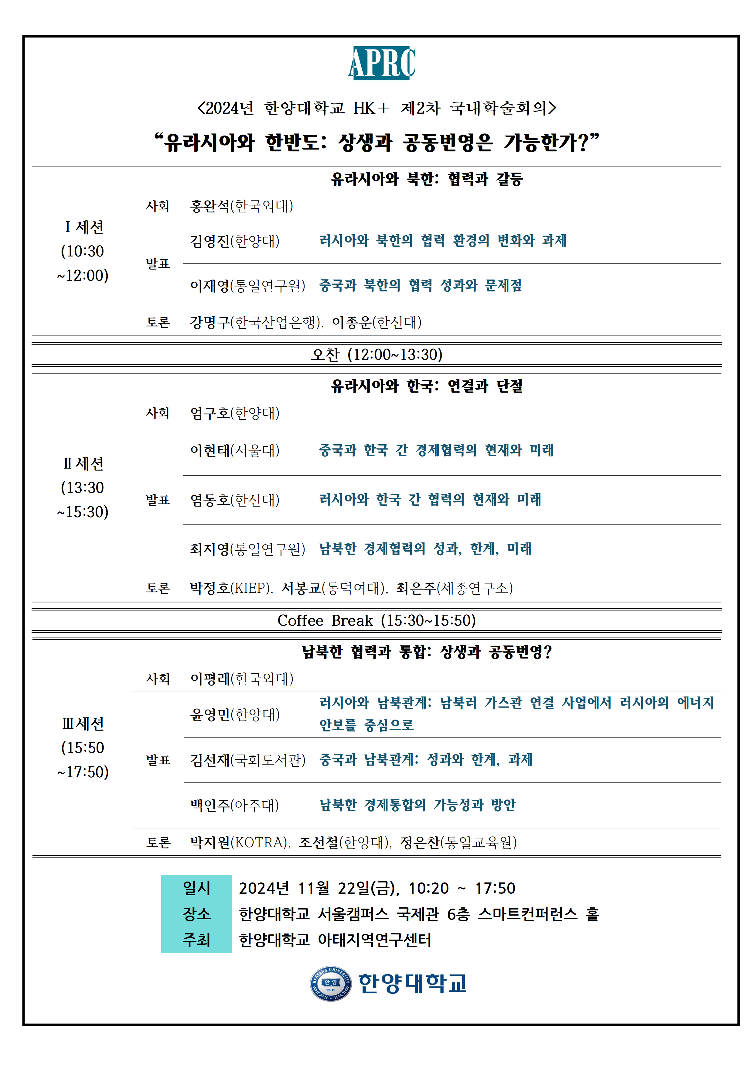 [공지] 2024년 한양대학교 HK+ 제 2차 국내학술회의: 유라시아와 한반도: 상생과 공동번영은 가능한가?